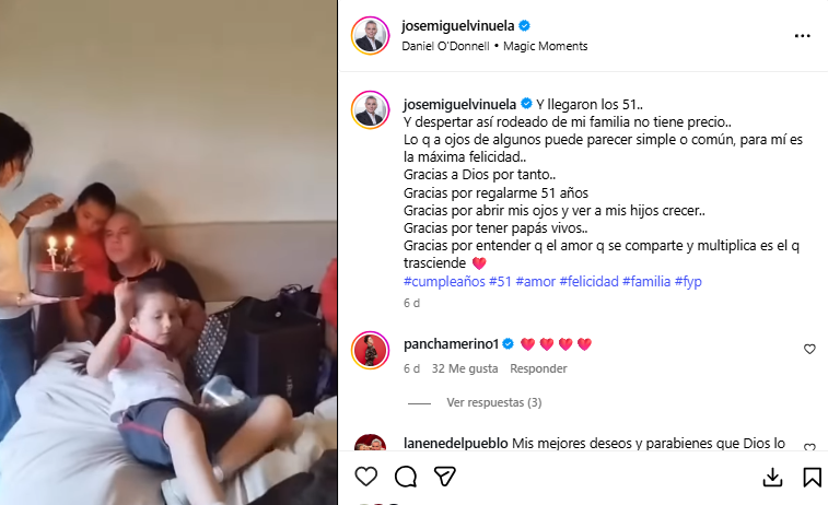 “Y llegaron los 51… Y despertar así rodeado de mi familia no tiene precio. Lo que a ojos de algunos puede parecer simple o común, para mí es la máxima felicidad”, señaló junto al video.