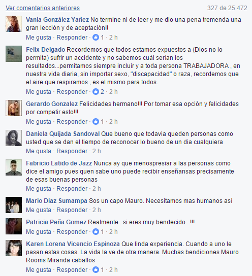 En menos de dos días este relato ha sido compartido más de 97 mil veces y ha recibido cerca de 25 mil comentarios. La totalidad de los mensajes felicitan a este joven mexicano, destacando que se haya dado el tiempo de hacer pública esta experiencia, y por haberle dado la oportunidad a este chofer con discapacidad auditiva.
