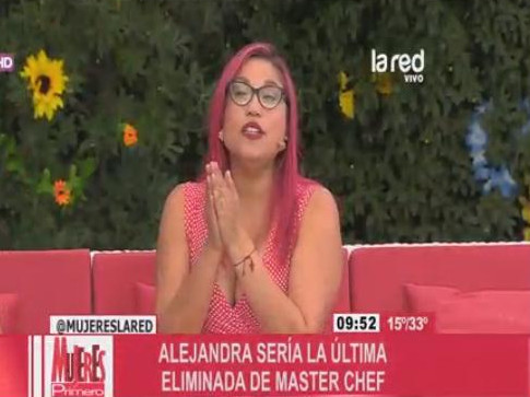 Así al menos lo indicó hoy en el programa Mujeres Primero de La Red, cuando comentaba sobre los finalistas del espacio. Su supuesta saluda se transmitiría en el capítulo de mañana, dando paso a la tripleta que peleará por los 25 millones y la posibilidad de escribir un libro con sus propias recetas.