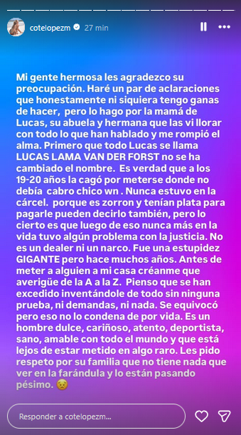 En ese contexto, María José López se pronunció a través de su cuenta de Instagram para salir en defensa de Lama.
