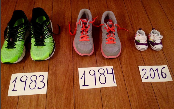 Apenas comenzaba el matinal cuando en una revisión de fotos de los rostros del programa llegaron a una estática en la que aparecían tres pares de zapatillas: Unas de hombre con el año 1983; unas de mujer con la inscripción 1984; y unas de bebé con el año 2016.