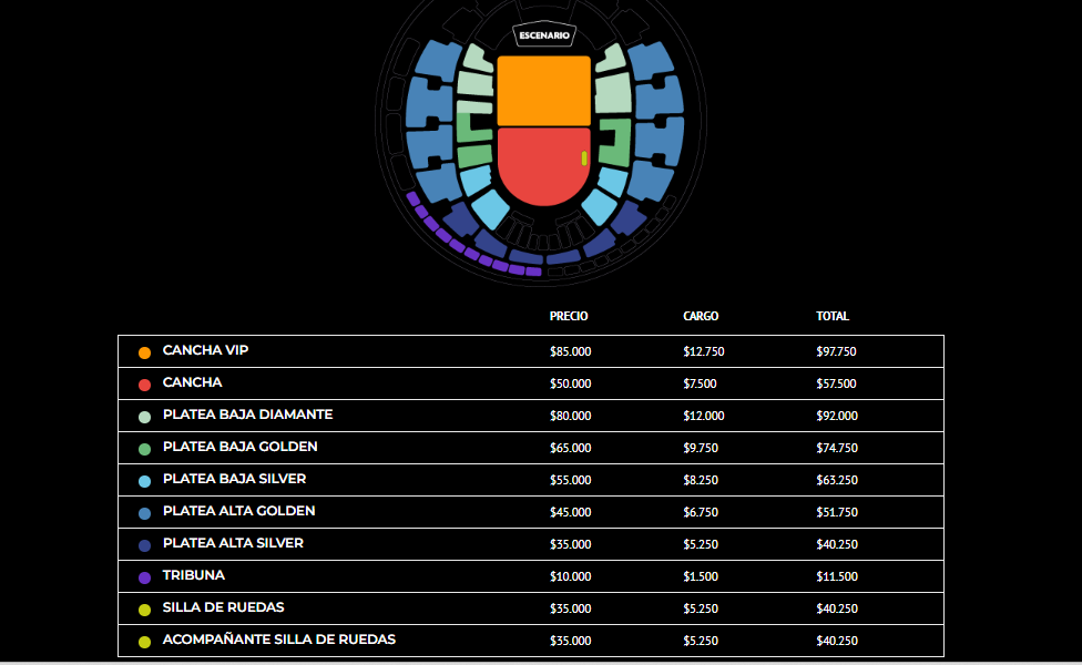 Revisa a continuación los precios y ubicaciones del concierto en Chile: