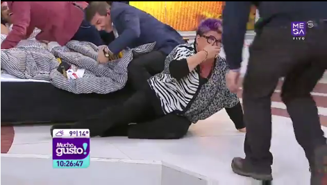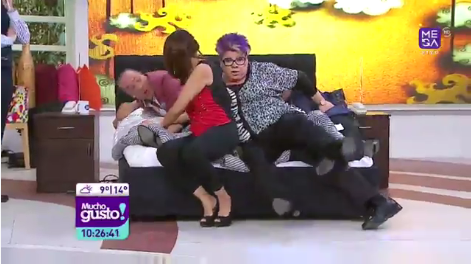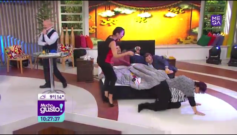 Eran cerca de las 10:30 de la mañana de este viernes cuando el panel del matinal Mucho Gusto de Mega se lanzó sobre una cama.