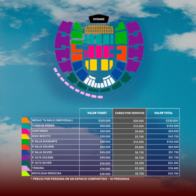 Revisa las localidades y precios a continuación: