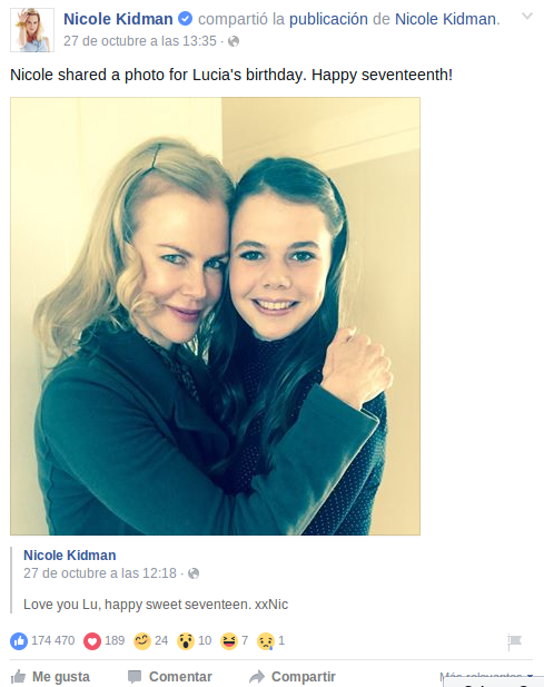 Sobrina de Nicole Kidman sorprende por su parecido a la actriz en Facebook