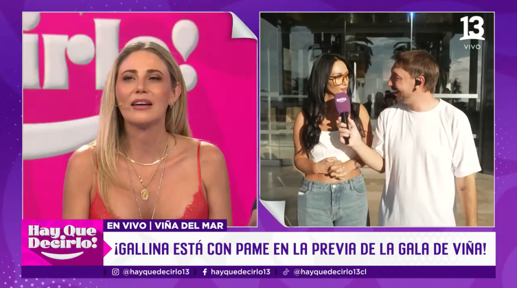 De esta forma, Rodrigo Gallina, notero y panelista de Hay que decirlo viajó hasta Viña del Mar para entrevistar a su propia jefa, quien llegó a tierras viñamarinas en marco de la Gala del festival.