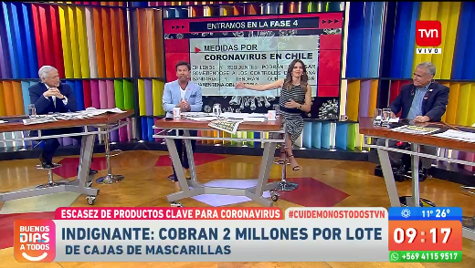 En tanto, en Buenos días a todos disminuyeron el número de panelistas y quedaron Ignacio Gutiérrez y María Luisa Godoy, más invitados, como Heraldo Muñoz y el médico Sebastián Ugarte. El resto, está en sus casas como medida para evitar contagios.