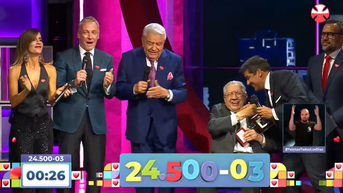 El Tío Valentín protagonizó un emotivo momento en la Teletón 2025 al ser premiado por su trayectoria por la Asociación Nacional de Televisión de Chile, Anatel.
