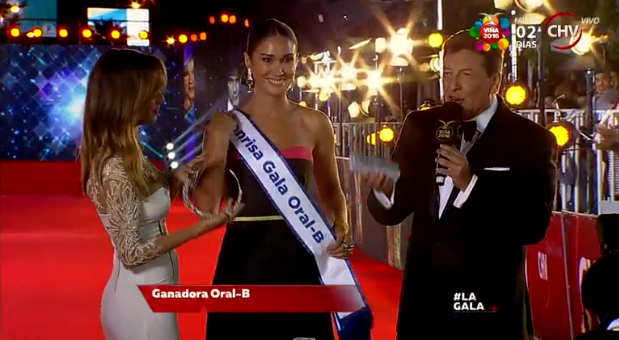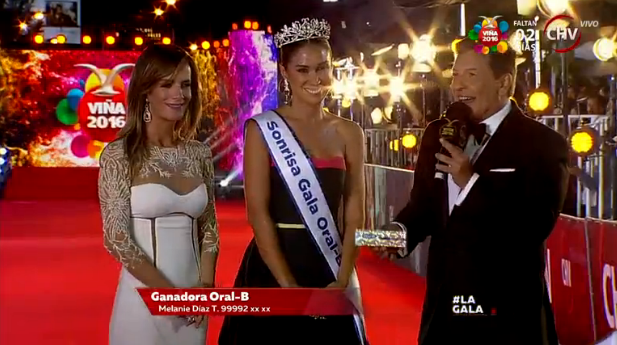 No obstante, la modelo volvió a ser parte de la transmisión, junto con Diana Bolocco, cuando debía recibir el premio a la ganadora del concurso “La mejor sonrisa de la Gala Oral B”. El tema, es que justo en el momento en que debía ser “coronada”, estaba pasando la otra candidata a reina del certamen, por Canal 13, Nicole “Luli” Moreno.