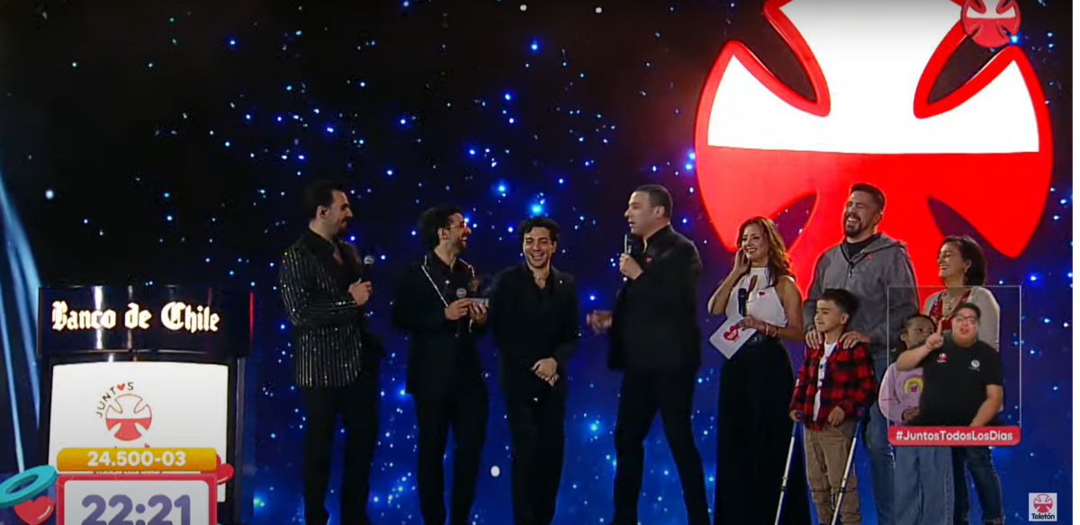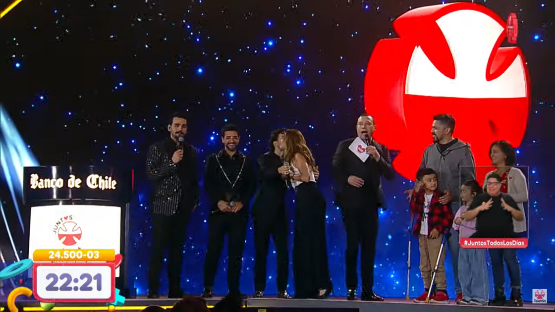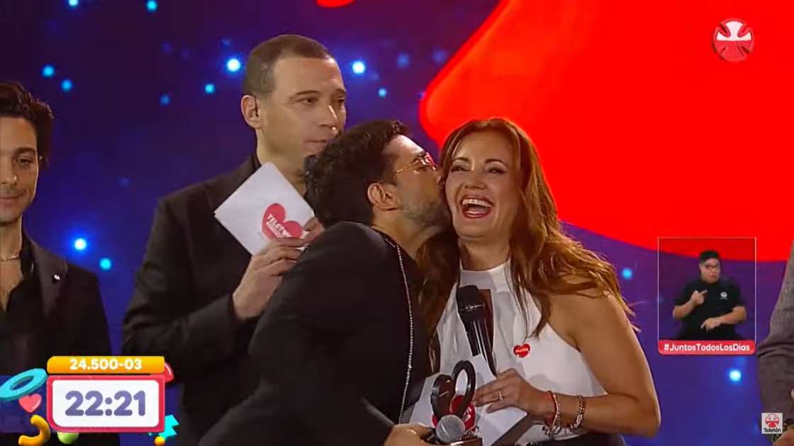 Todo comenzó cuando el niño embajador de la Teletón, Chris Lindsay Doren, saludó a los artistas y animadores con un beso.