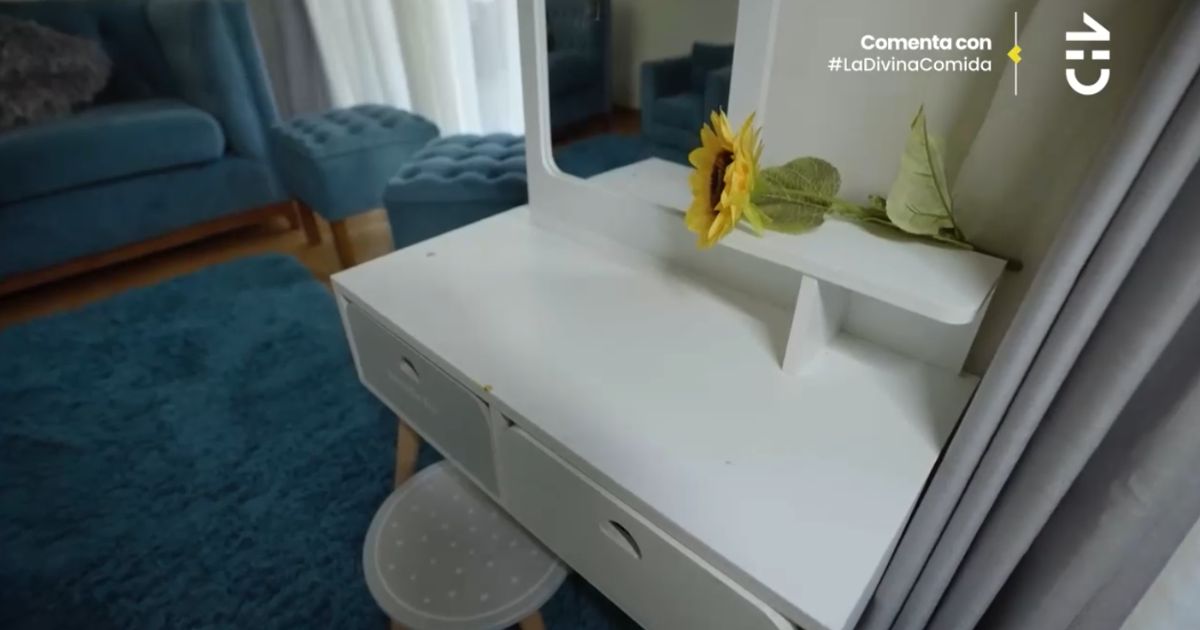 Luego, enseñó el living, donde tenía sillones y una alfombra color azul petróleo, y también había un pequeño tocador blanco, que pertenecía a su hija de 5 años, Agustina.