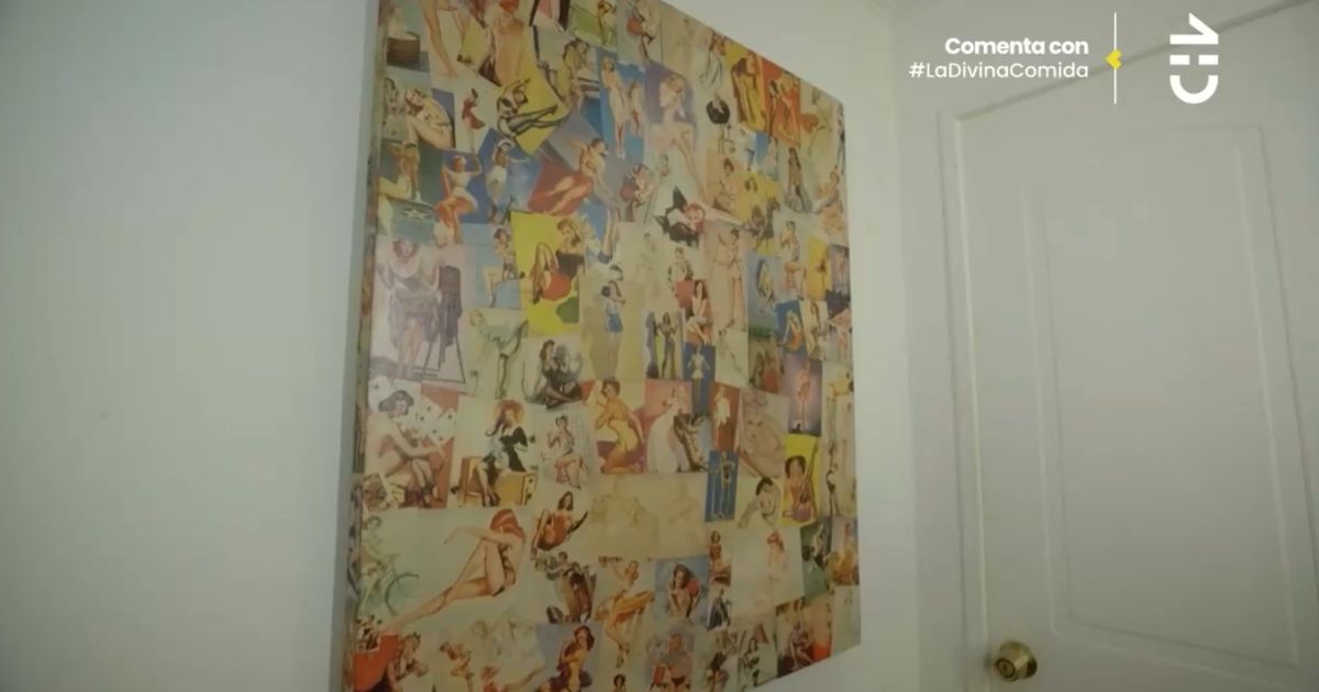 Yamna Lobos enseñó un curioso cuadro que adornaba su pared en la entrada. En él había un collage de diferentes fotos e ilustraciones de mujeres de los años 50′.