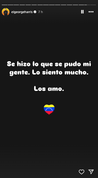 “Se hizo lo que se pudo mi gente. Lo siento mucho. Los amo”, expresó Harris, acompañando un corazón con la bandera venezolana.