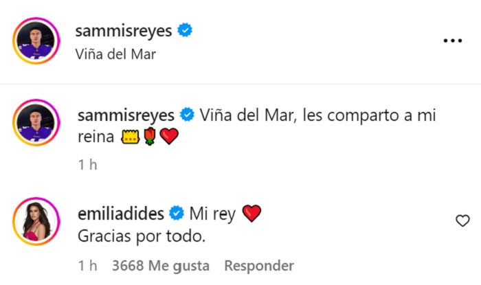 En la caja de comentarios, destacó justamente el de Emilia Dides, quien agradeció a Sammis Reyes por su apoyo y cariño.