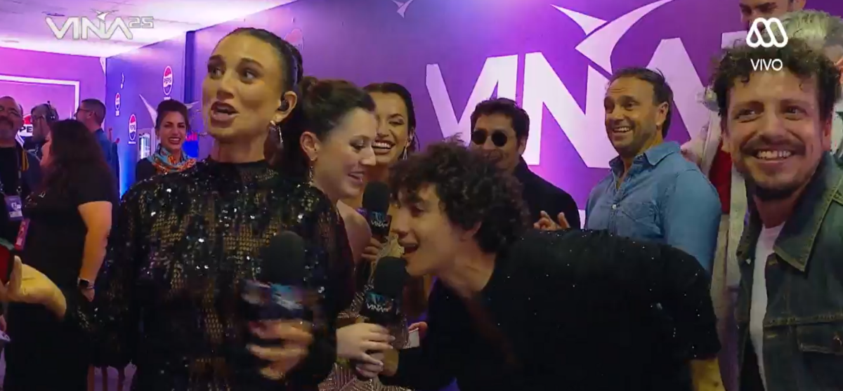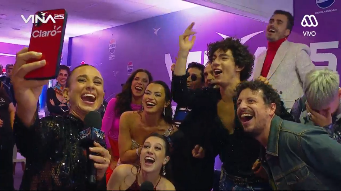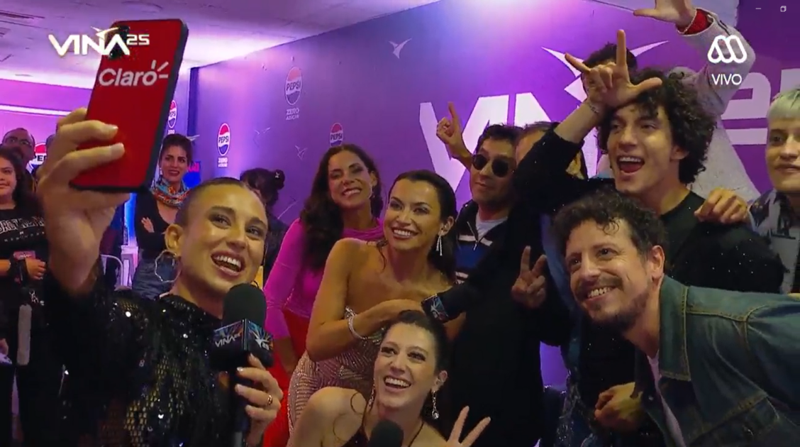 En ese contexto, la comunicadora a cargo del backstage de Viña 2025 alzó su celular para tomar la selfie junto al jurado.