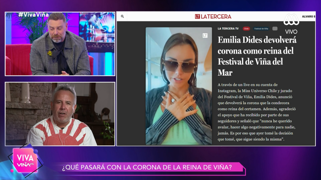 “La corona la tiene Emilia Dides y hay que reconocer que, ella misma, dijo ‘traté de hacer un esfuerzo, de hacer algo bonito, para compartir y no fue recibido como yo pensaba y ahora me siento, realmente, la Reina de Festival de Viña'”, comentó el también director del diario La Hora.
