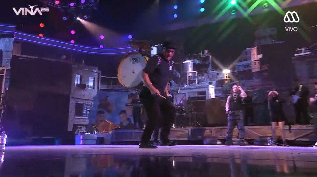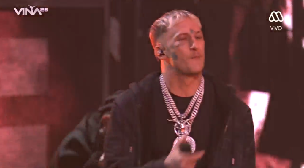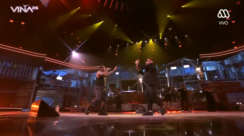 El primero de ellos fue Yung Beef, artista español con quien interpretó Singapur. “El padrino del trap en español”, anunció el chileno en la Quinta Vergara.