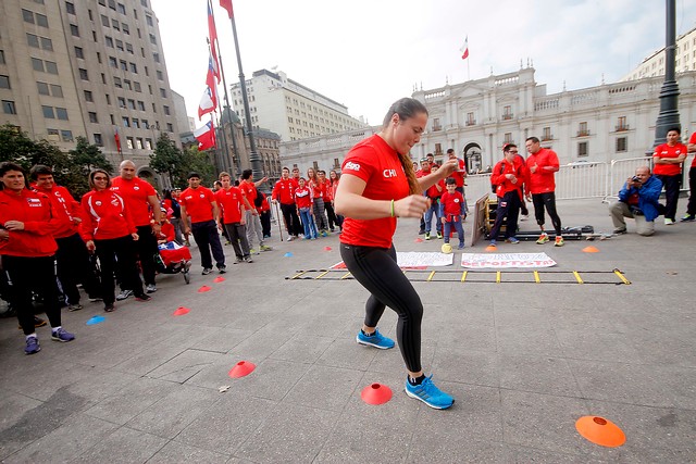 Esta tarde el palacio de La Moneda se tiñó de rojo, debido a la decena de deportistas de alto rendimiento que acudieron hasta el céntrico lugar para manifestarse.