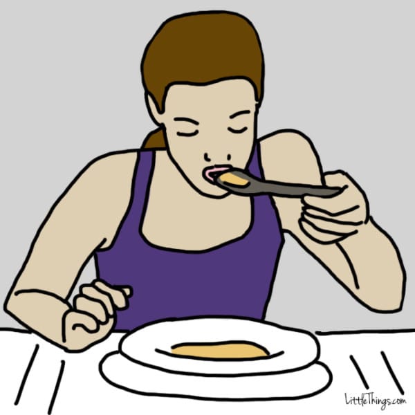 Te gusta sorbetear la sopa y masticar la comida ruidosamente y con ganas. Esto significa que eres un espíritu libre y te da lo mismo lo que los demás piensen de ti. Marchas a tu propio ritmo y la gente admira eso de ti. No te da miedo mostrarte como eres ni que la gente conozca lo que quieres. Eres una persona directa y abierta, lo cual puede molestar a algunos. Pero no dejes que nadie te cambie y continúa a tu propio paso.