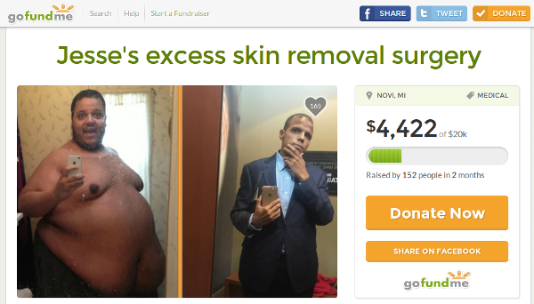 Eso sí, ahora enfrenta otro drama que viven todos los que experimentan bajas de peso extremas, y es la piel suelta. Es por eso que el Jesse inició una campaña de recaudación de fondos para poder someterse a una cirugía que elimine toda la piel sobrante.