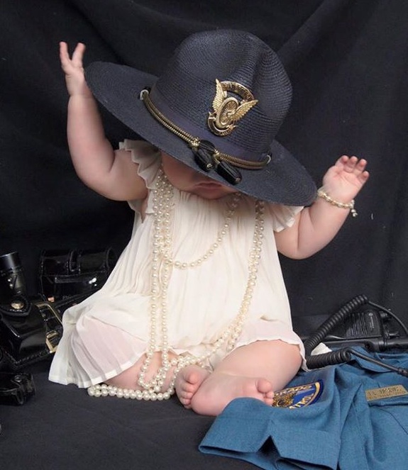 En ella, se ve a su hija de 8 meses, Morgan, usando el vestido, un collar de perlas y el sombrero de su difunta madre. A su lado, dejaron parte de su uniforme. La foto rápidamente se viralizó, mientras en la oficina policial esperan que genere conciencia.