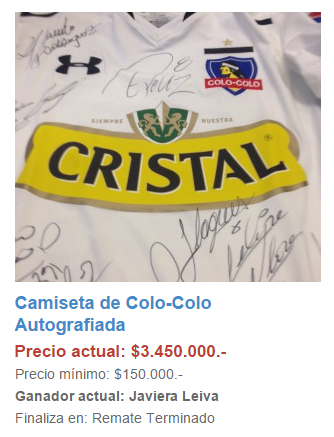 En la otra vereda, la prenda que se robó toda la atención fue una camiseta de Colo-Colo autografiada por todo su plantel, que se remató en 3.450.000 mil pesos.