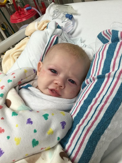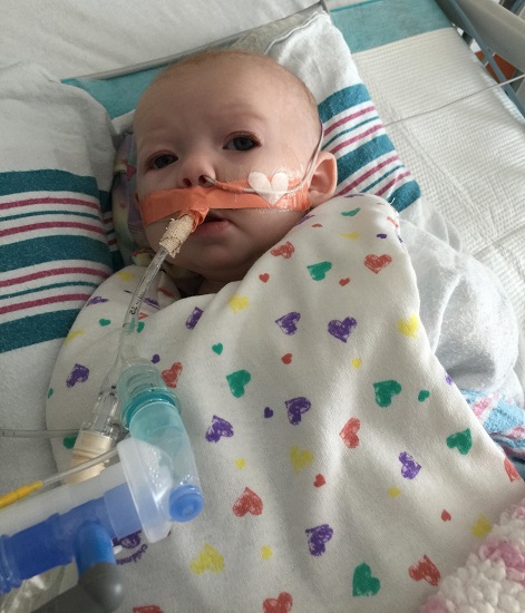 El hombre compartió una imagen de su bebé, quien contrajo un peligroso virus respiratorio Sincitial mientras estaba siendo tratada por meningitis en el hospital.