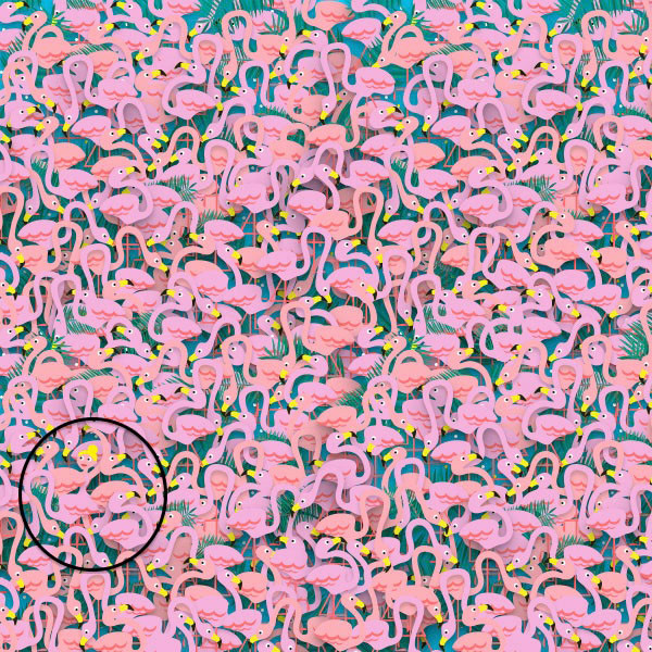 En este desafío visual nos cambiamos del tradicional blanco y negro de nuestros amigos los pandas y nos metemos en el mundo del rosado gracias a unos simpáticos flamencos.