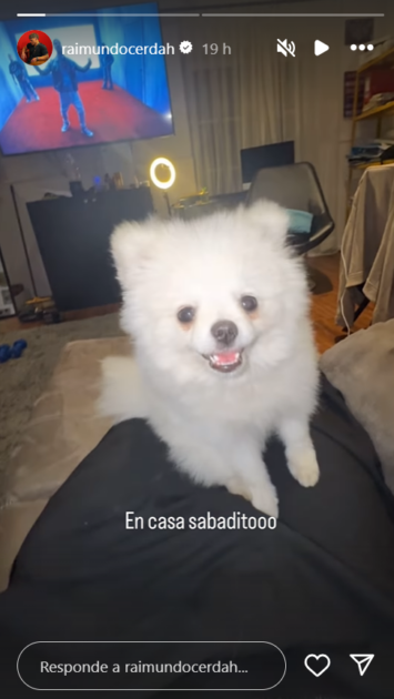 Por su parte, este fin de semana, Rai compartió en Instagram algunos videos en los que, efectivamente, está en el living de su casa junto a un perrito.