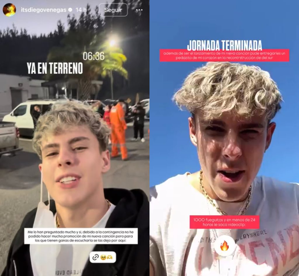 Críticas en redes sociales enfrentó Diego Venegas, exparticipante de Mundos Opuestos, luego de promocionar su nuevo single musical mientras participaba en labores de ayuda a damnificados por los incendios en la región del Biobío.