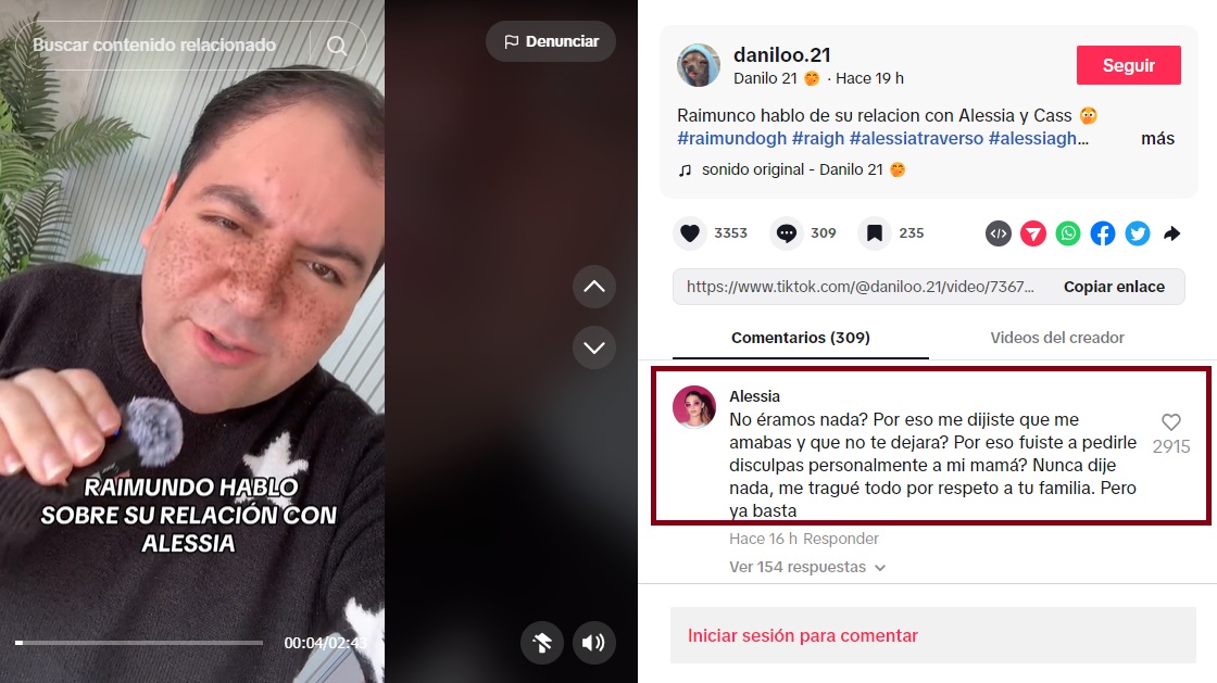 Tras las declaraciones de Raimundo, Alessia Traverso hizo un duro descargo, a través de los comentarios del video del tiktoker Danilo 21, quien analizó el hecho.