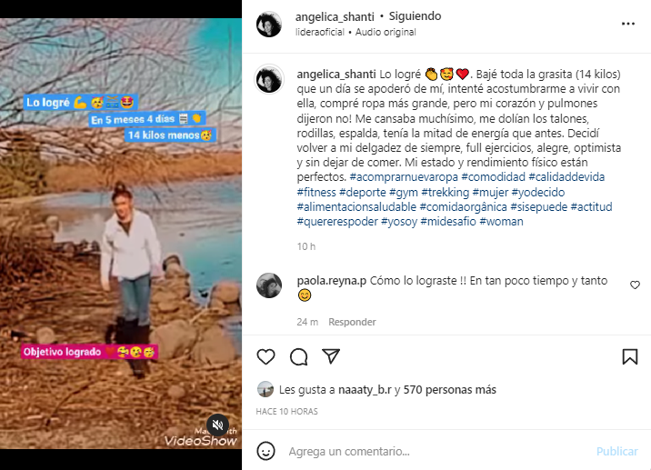 Según detalló la exchica reality en su perfil oficial de Instagram, en donde cuenta con más de 54 mil seguidores, consiguió una considerable baja de peso.