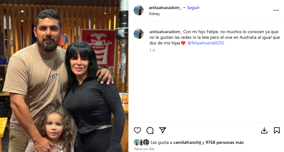 En medio de sus redes sociales, la empresaria también tuvo palabras para su hijo Felipe Huerta, quien al igual que sus hermanas, se encuentra radicado en Australia.
