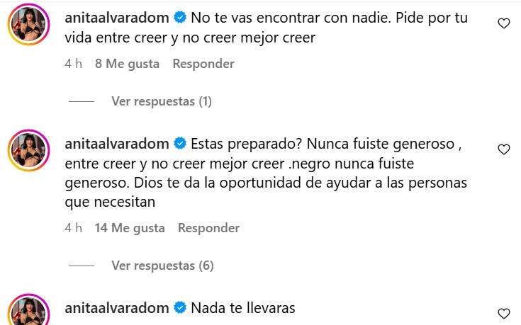 “¿Estás preparado? Nunca fuiste generoso, entre creer y no creer, mejor creer. Negro nunca fuiste generoso. Dios te da la oportunidad de ayudar a las personas que necesitan”, sostuvo en otro escrito.