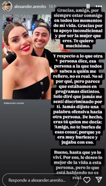 Mediante sus redes sociales, Arenito defendió a su amiga, publicando una foto con Faloon y agradeciendo su amistad.
