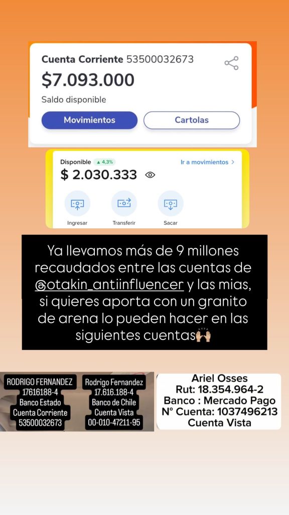 Por su parte, Otakin se sumó activamente a la cruzada solidaria e inició una colecta abierta, compartiendo los datos de dos cuentas bancarias para quienes quieran aportar.