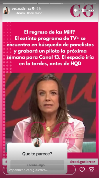 Cecilia Gutiérrez contó en su cuenta de Instagram que el recordado programa Milf, encabezado por Claudia Conserva, podría volver a la televisión abierta.