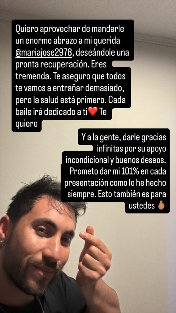 “Eres tremenda. Te aseguro que todos te vamos a extrañar demasiado, pero la salud está primero. Cada baile irá dedicado a ti, te quiero”.