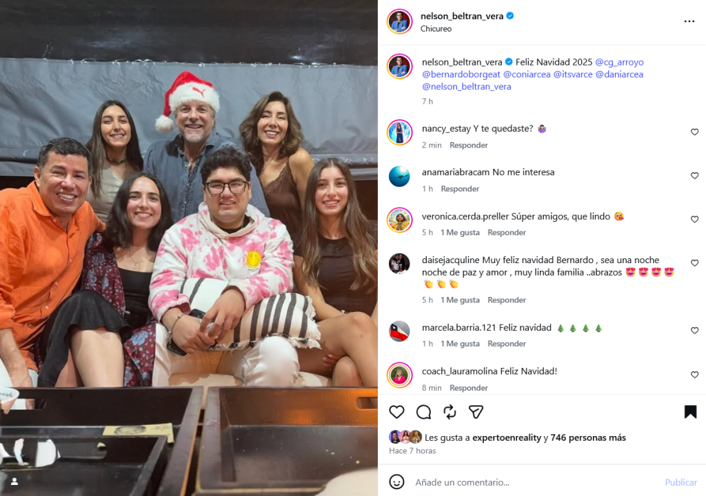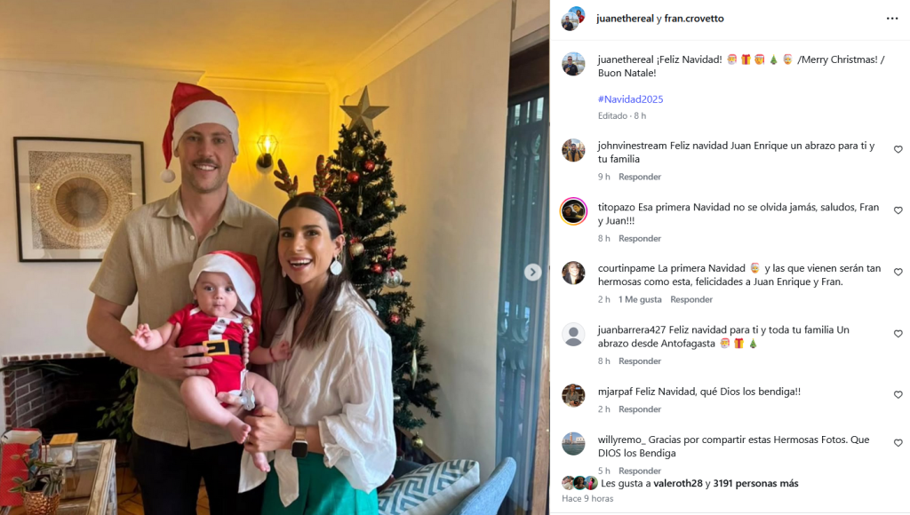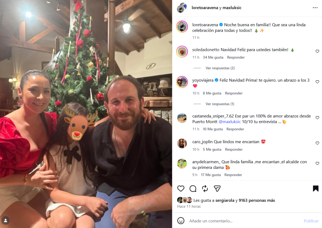 “¡Noche buena en familia! Que sea una linda celebración para todas y todos”, escribió Loreto Aravena en compañía de su hija y su pareja, Max Luksic.