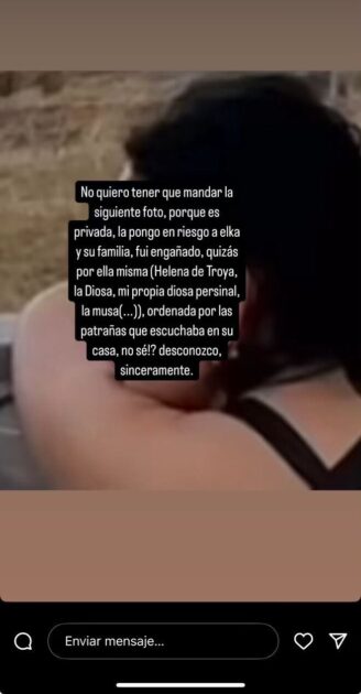 En dichas pruebas se lee: “No quiero tener que mandar la siguiente foto porque es privada, la pongo en riesgo a ella misma (Helena de Troya, la diosa, mi propia diosa personal, la musa), ordenada por las patrañas que escuchaba en su casa, no sé”, indicó el estudiante de Derecho.