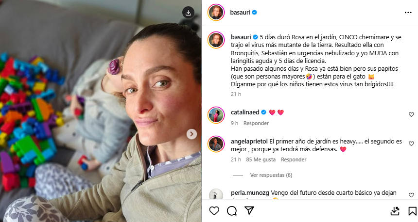 Pero eso no fue todo, ya que explicó que ella y su pareja también fueron afectados. “Resultado: ella con bronquitis, Sebastián en urgencias nebulizado y yo muda con laringitis aguda y cinco días de licencia”.