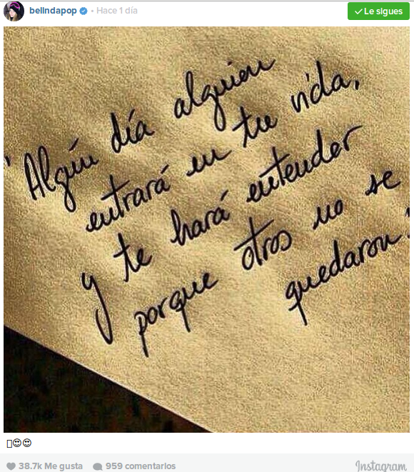 De acuerdo a lo informado por diario Publimetro, al verla, tanto Téllez como Cristopher decidieron ignorar a Belinda, quien tras divisarlos compartió un sentido mensaje en Instagram, donde da a entender que aún no supera por completo su quiebre amoroso.