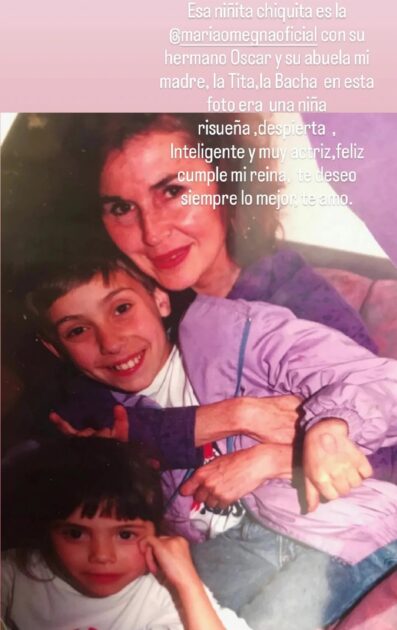Y continuó: “La Bacha en esta foto era una niña risueña, despierta, inteligente y muy actriz. Feliz cumple mi reina, te deseo siempre lo mejor. Te amo”.