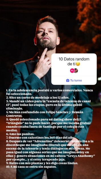 “En la adolescencia postulé a varios comerciales. Nunca fui seleccionado”, comentó en uno de los puntos compartidos en la red social que suma más de 160 mil seguidores.