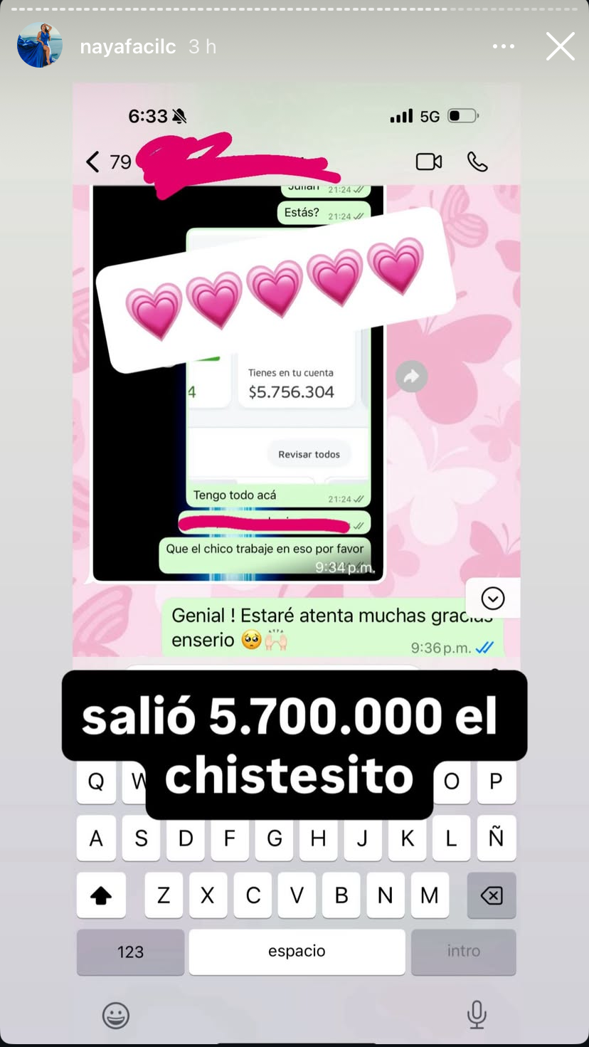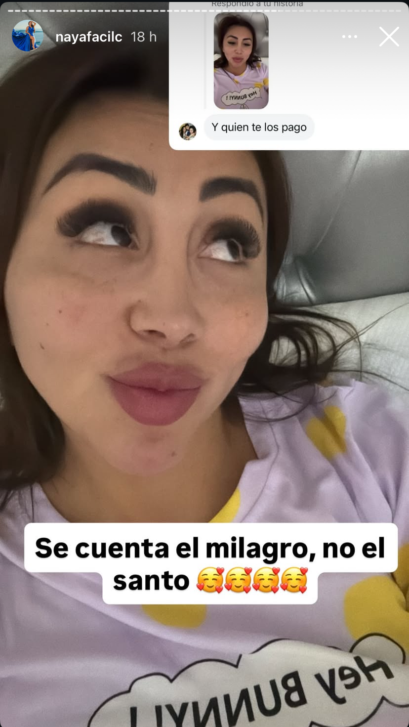 “Pero adivinen qué, no los pagué yo. Creo que por primera vez me hacen un regalo”, contaba Naya Fácil en sus historias de Instagram.