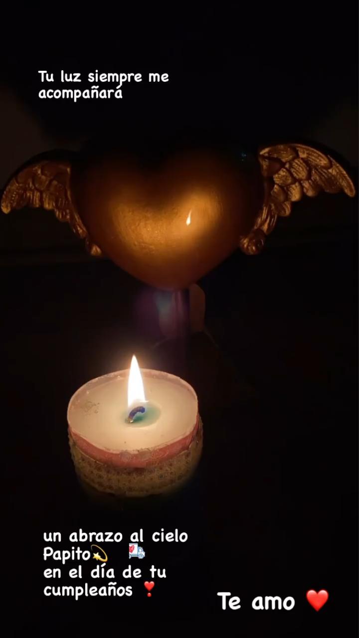 “Tu luz siempre me acompañará. Un abrazo al cielo papito en el día de tu cumpleaños. Te amo”, escribió en sus historias de Instagram, junto a una fotografía de una vela encendida y un corazón.