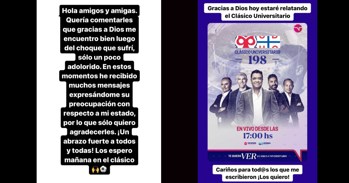 Finalmente, informó a sus seguidores que estaría relatando el Clásico Universitario que se disputó esta tarde.