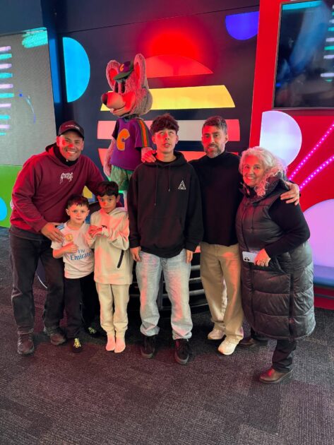 En la imagen se observa al pequeño junto a su padre, su tío, su primo -el hijo del Mago con Daniela Aránguiz- y su abuela, Elizabeth Toro.