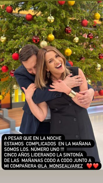 “A pesar de que en la noche estamos complicados (en el rating), en la mañana somos los número uno“, señaló en un escrito sobre una foto en la que aparece con su dupla.