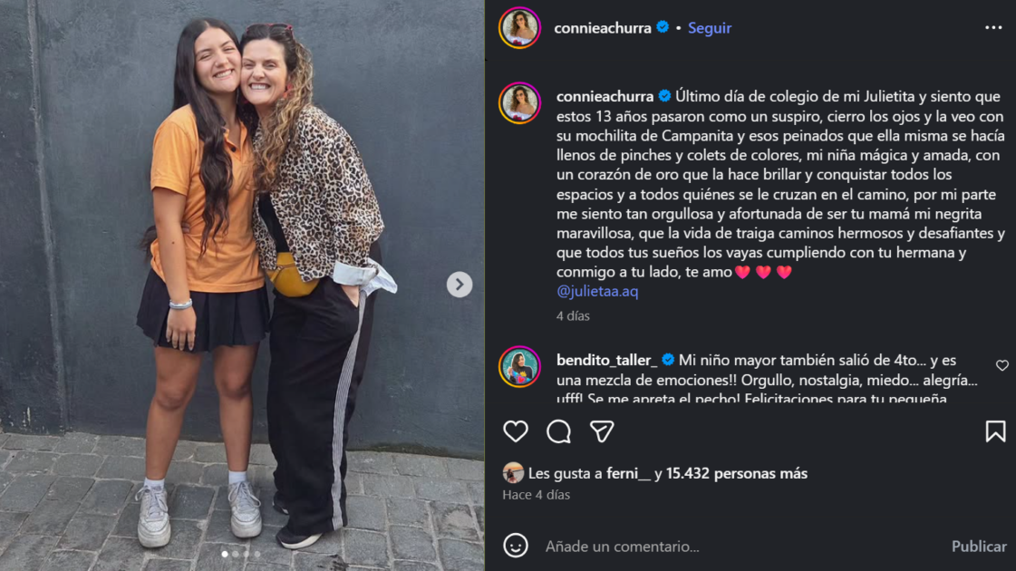 La reconocida cocinera e influencer publicó en sus redes sociales varias imágenes del último día de clases de su hija mayor, Julieta, quien a sus 17 años cerró oficialmente su etapa escolar.